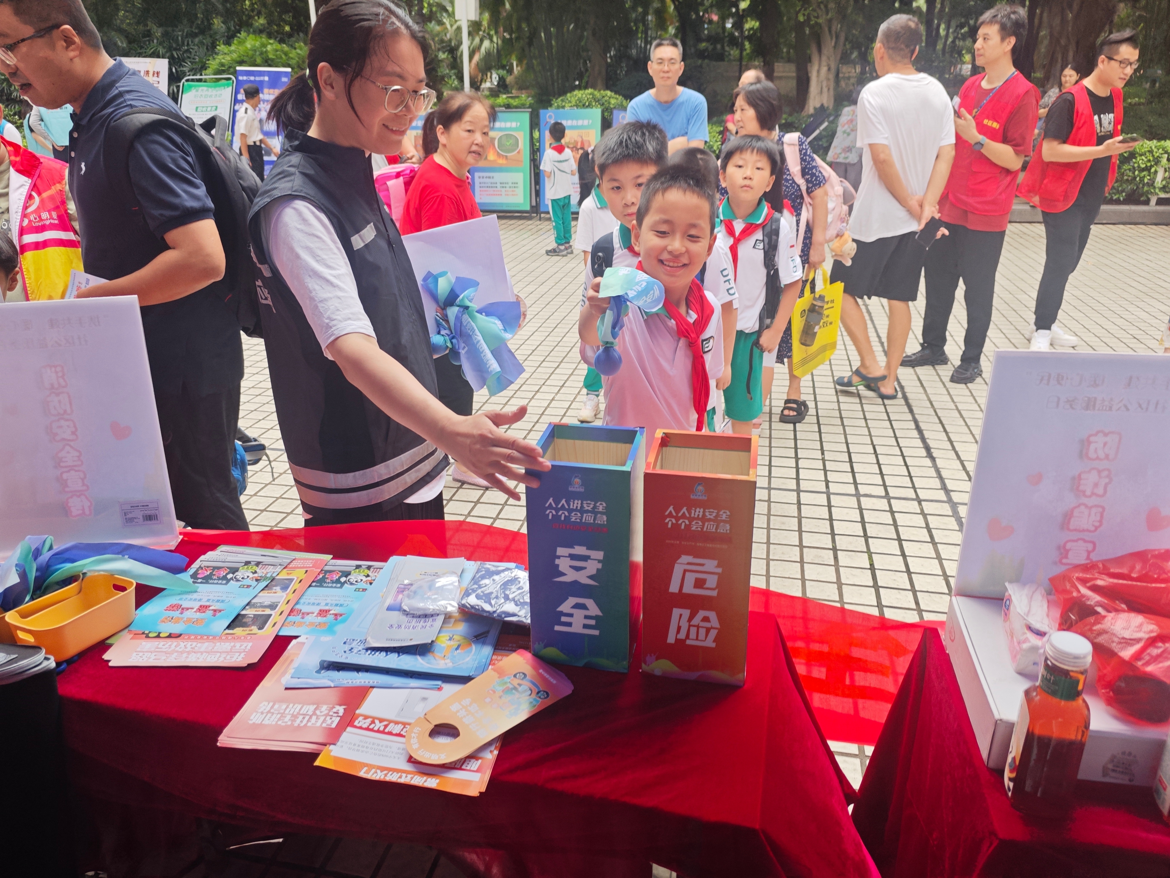 活动采取“集中宣传+重点关怀”策略,确保安全知识精准送达。在东风广场和杨箕祠堂,工作人员通过摆放宣传展板以及发放图文并茂、通俗易懂的《居家安全手册》《电动车安全须知》等资料,结合现场咨询答疑,将专业术语转化为“大白话”。针对不同人群,侧重点各有不同:向老年人强调防跌倒、安全用药;向学生普及防溺水、交通安全知识。